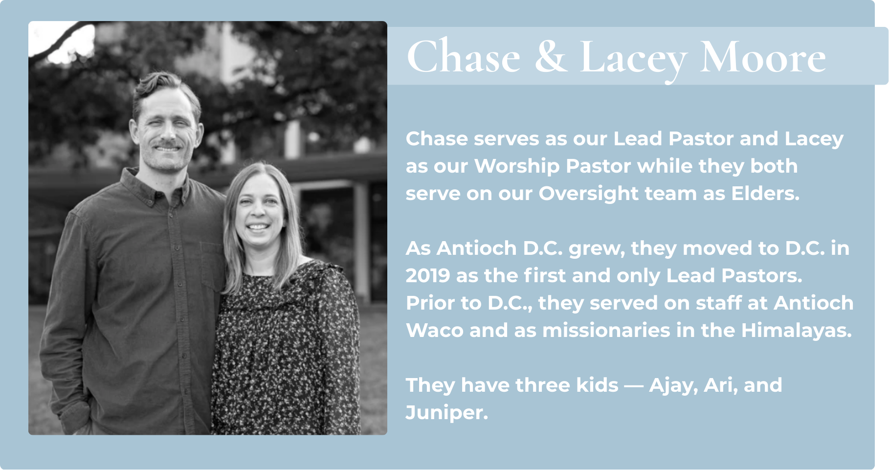 Oversight Team is comprised of both Elders & Overseers that are appointed by Antioch D.C. Leadership and the External Board of Advisors.
